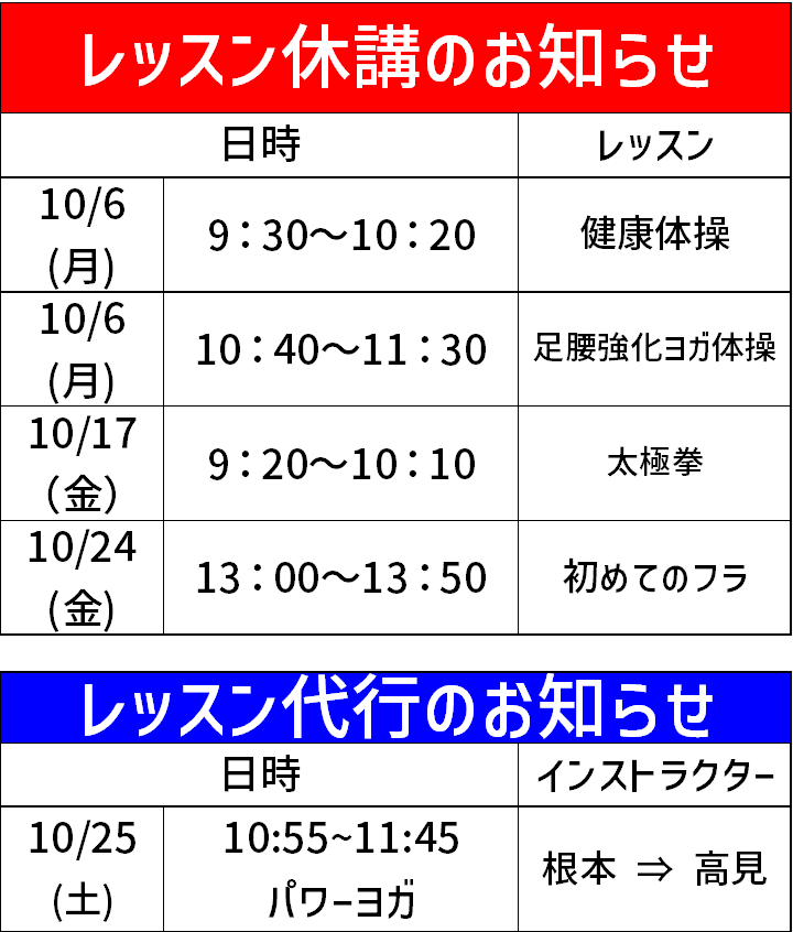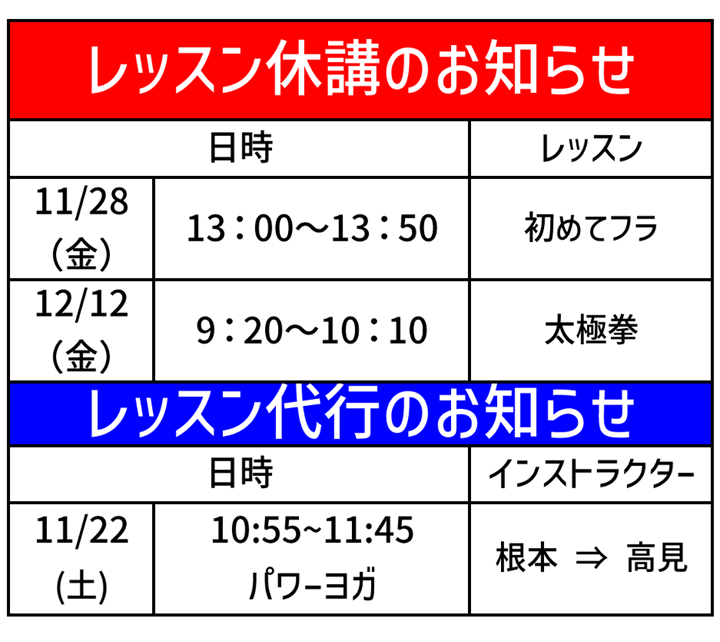 代行・休講案内