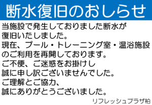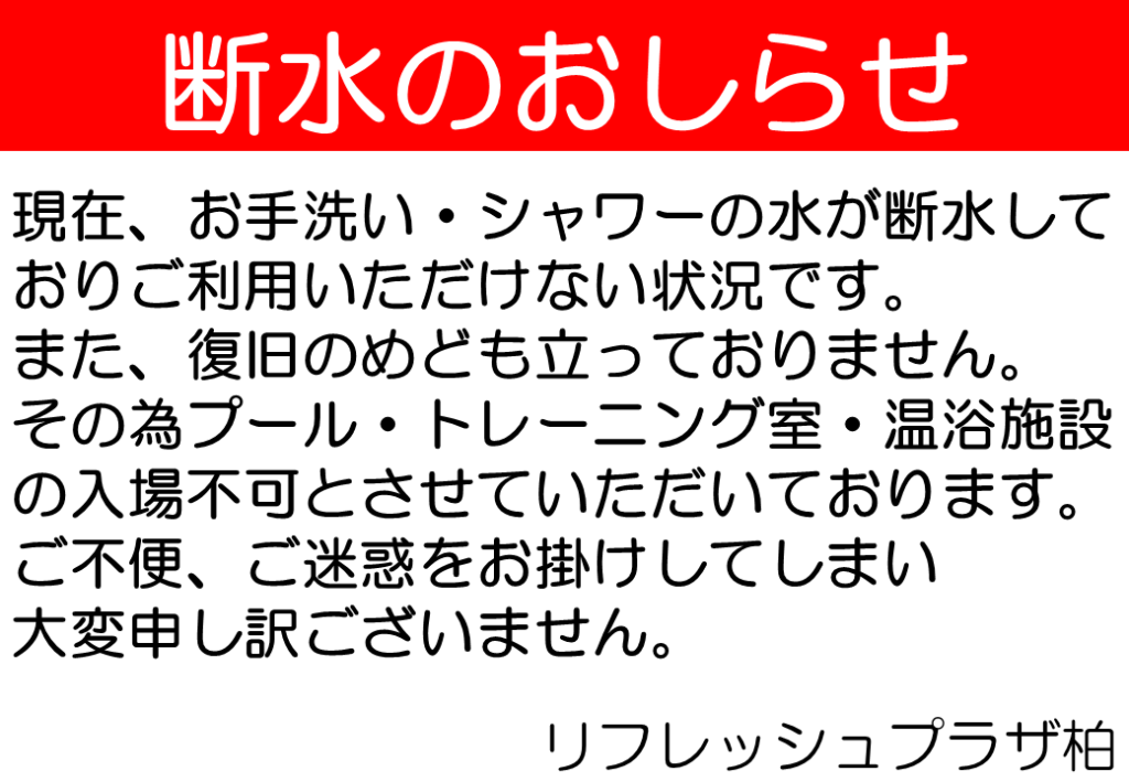 断水のお知らせ 2025 10/26 お知らせ お知らせ URLをコピーしました! 2025年10月・11月当日参加型レッスン 休講・代行のお知らせ 断水復旧ののお知らせ 関連記事 断水復旧ののお知らせ 2025年10月26日 2025年10月・11月当日参加型レッスン 休講・代行のお知らせ 2025年10月24日 南側(包括支援センター側)仮設足場設置のお知らせ 2025年10月24日 10/29(水) ZUMBA ハロウィンパーティーVer. 2025年10月23日 子どもプールの利用再開について 2025年10月23日 卓球台貸出休止のお知らせ 2025年10月20日 10月25日(土)🦇ハロウィンZUMBA🎃 2025年10月20日 子どもプール配管工事のお知らせ 2025年9月23日
