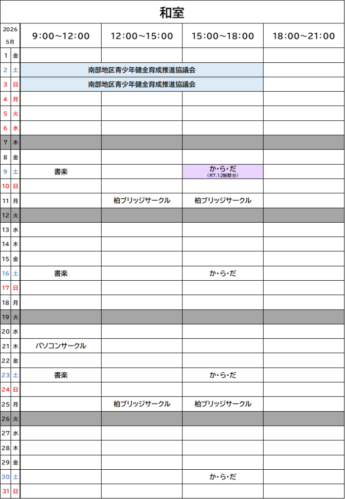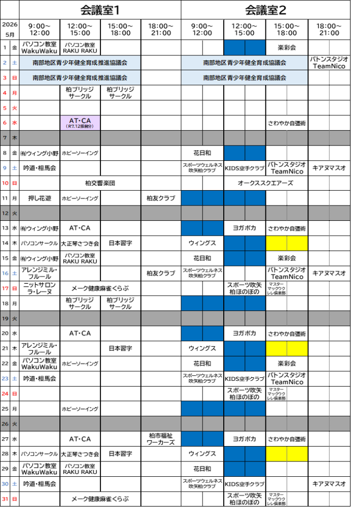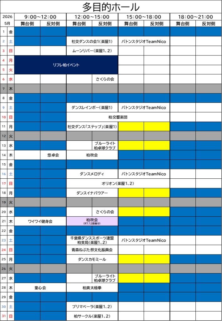 平素よりリフレッシュプラザ柏をご利用頂き誠にありがとうございます。2026年5月分の団体抽選結果を掲載致します。下記の内容となりますのでご確認のほど宜しくお願い致します。 ※当投稿は抽選結果であり、抽選結果発表後に変更があった際の反映はし... -