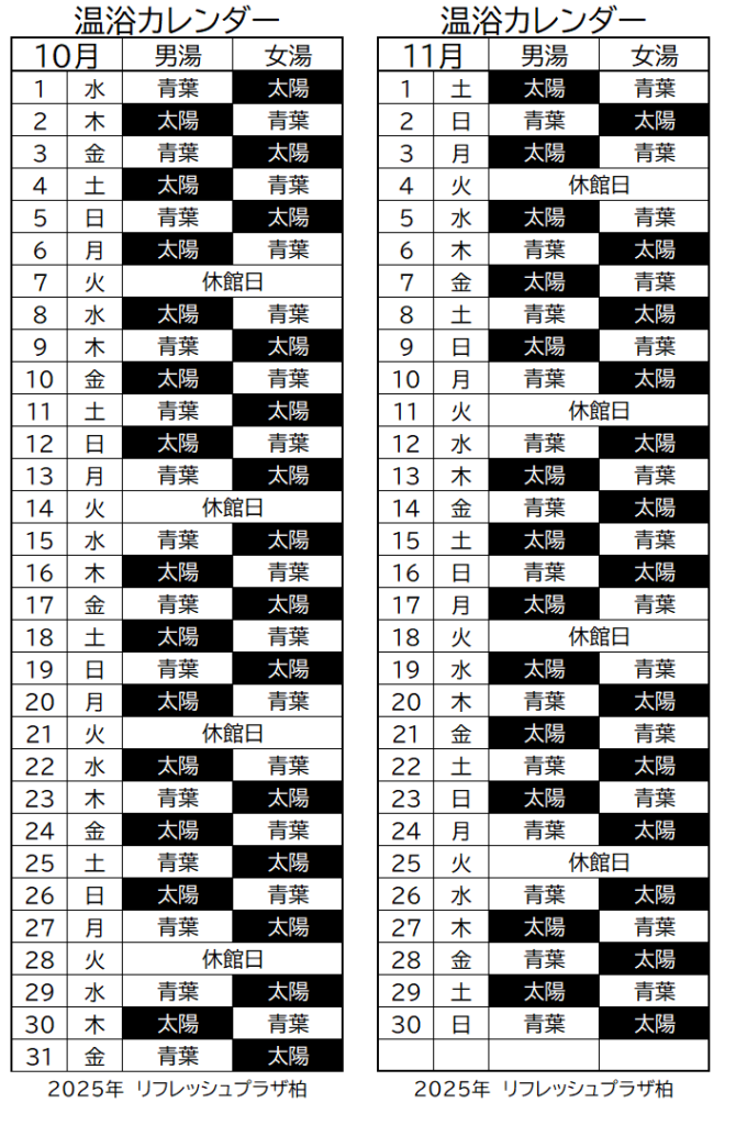 毎日、青葉の湯と太陽の湯が入れ替わり楽しめます。