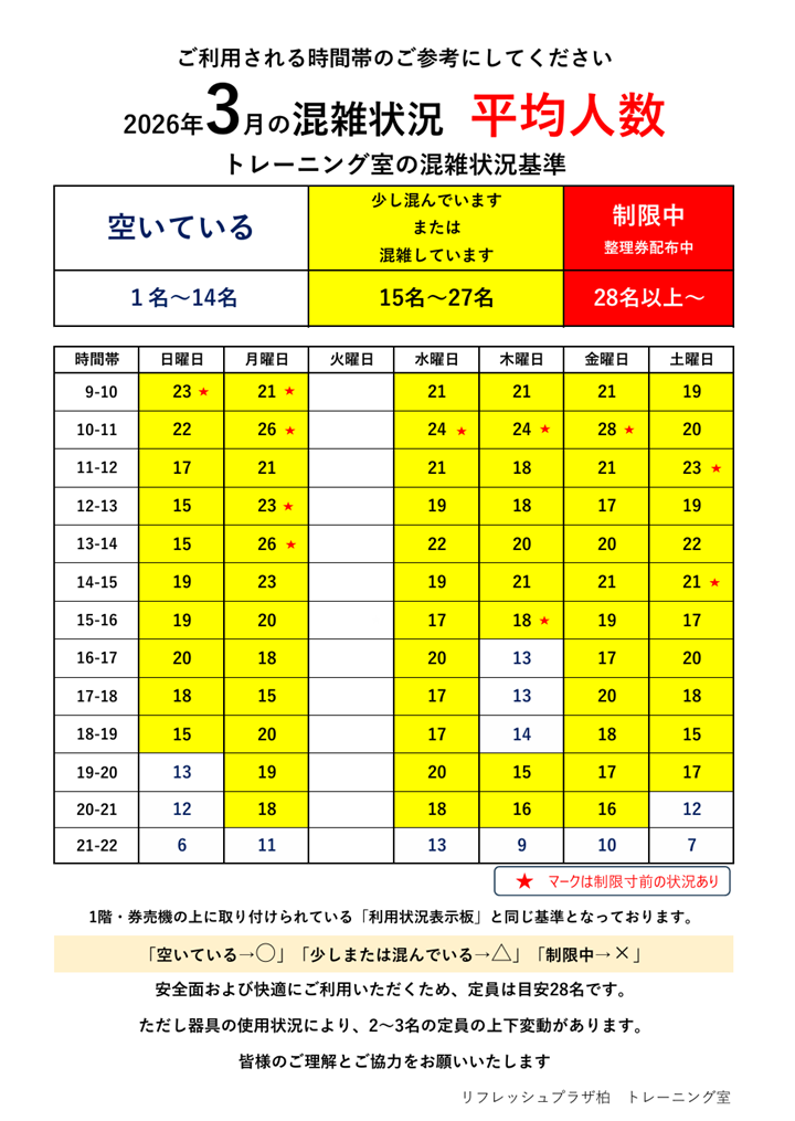 トレーニングルームの混雑状況をアップしました。