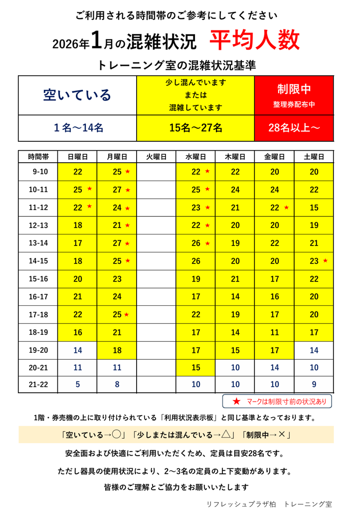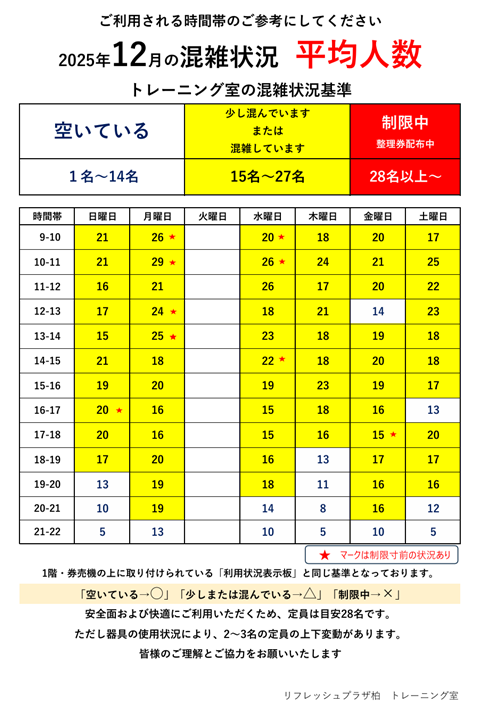 トレーニングルームの混雑状況をアップしました。